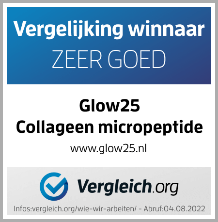Glow25 Collageen is niet alleen een favoriet onder gebruikers, maar ook winnaar van Vergelijk.org en VerbraucherVergleich.de.