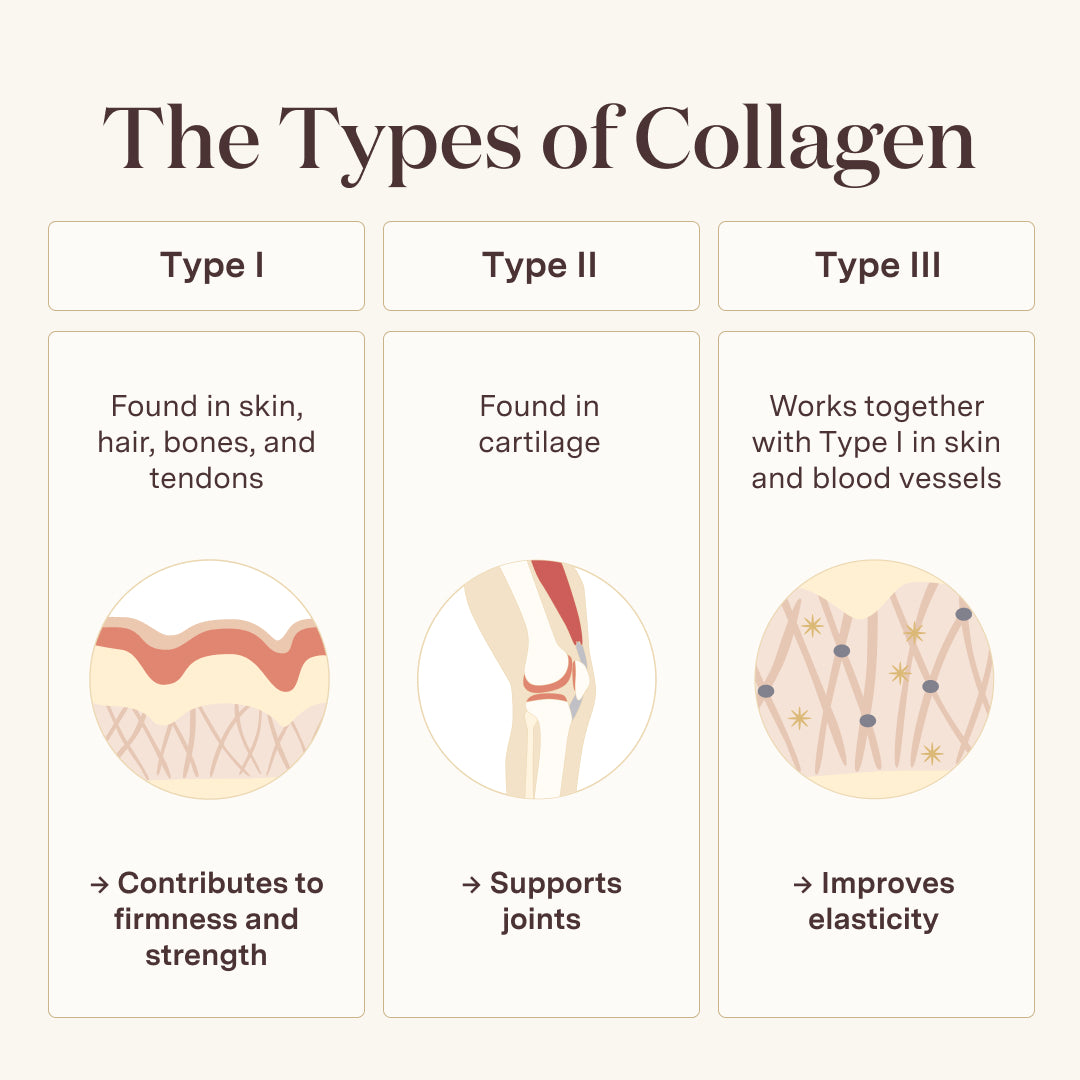 - Type I supports skin, hair, and bones, promoting strength and radiance.
