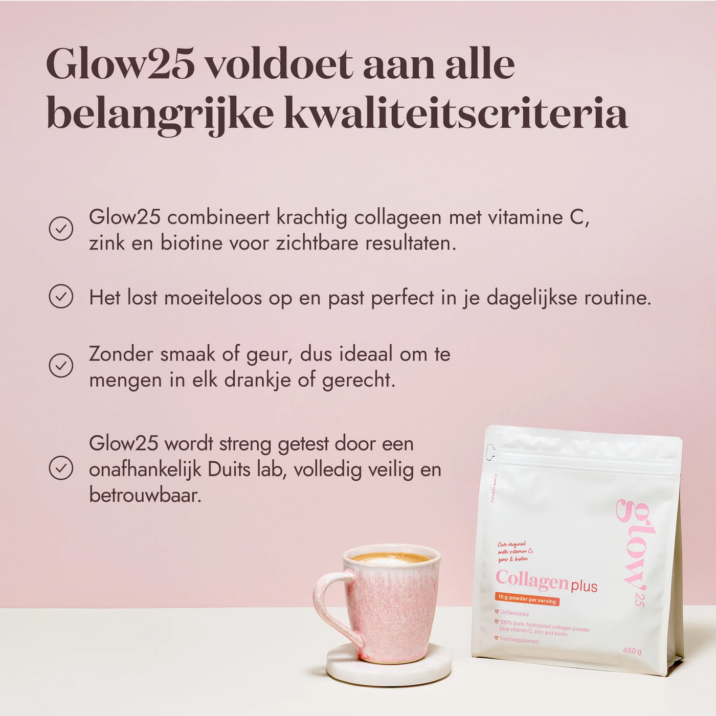Als meer dan 40.000 Nederlandse vrouwen elke dag opnieuw voor Glow25 collageenpoeder kiezen, dan is daar een goede reden voor.