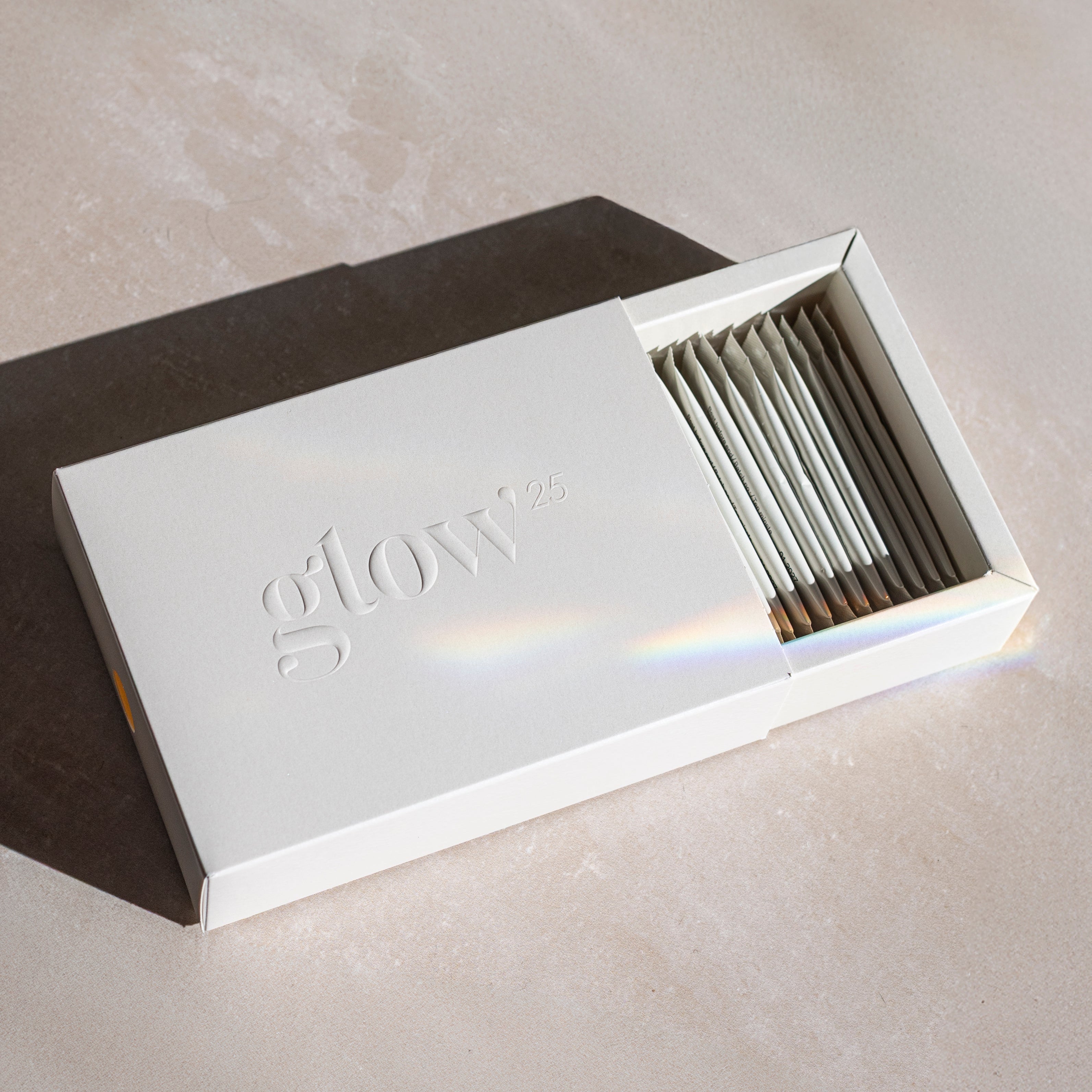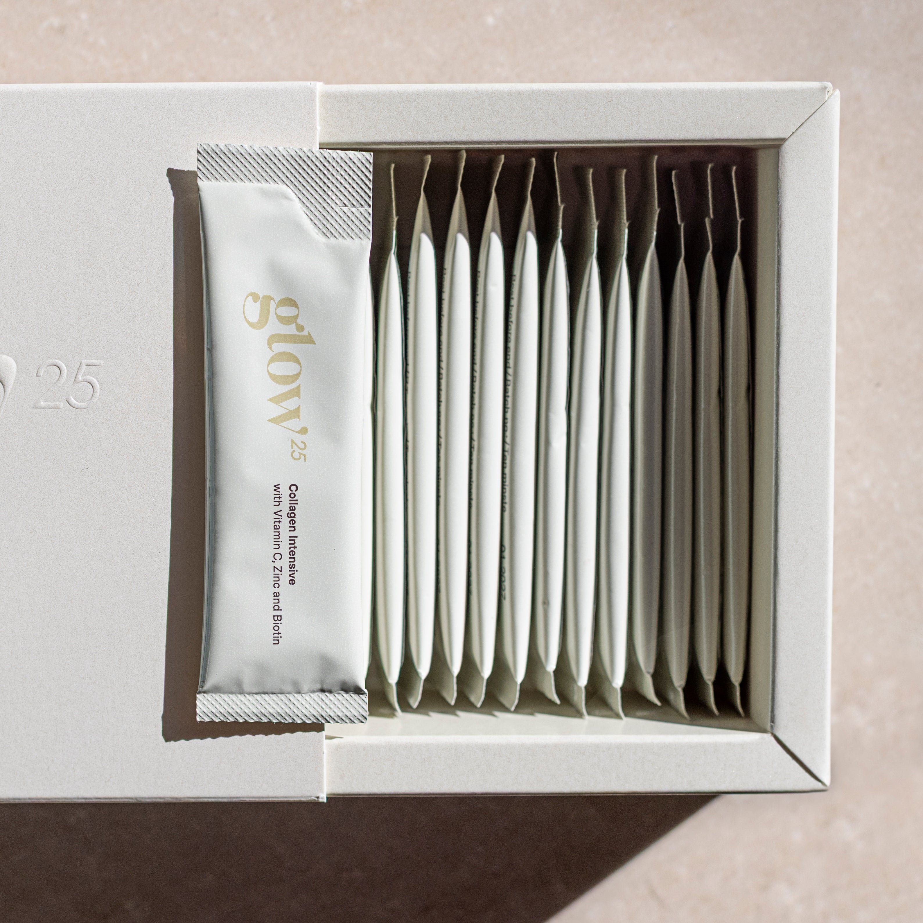 *Gebaseerd op 40 deelnemers over 8 weken orale suppletie van 2,5 gram per dag, Glow25-consumententest 2025.